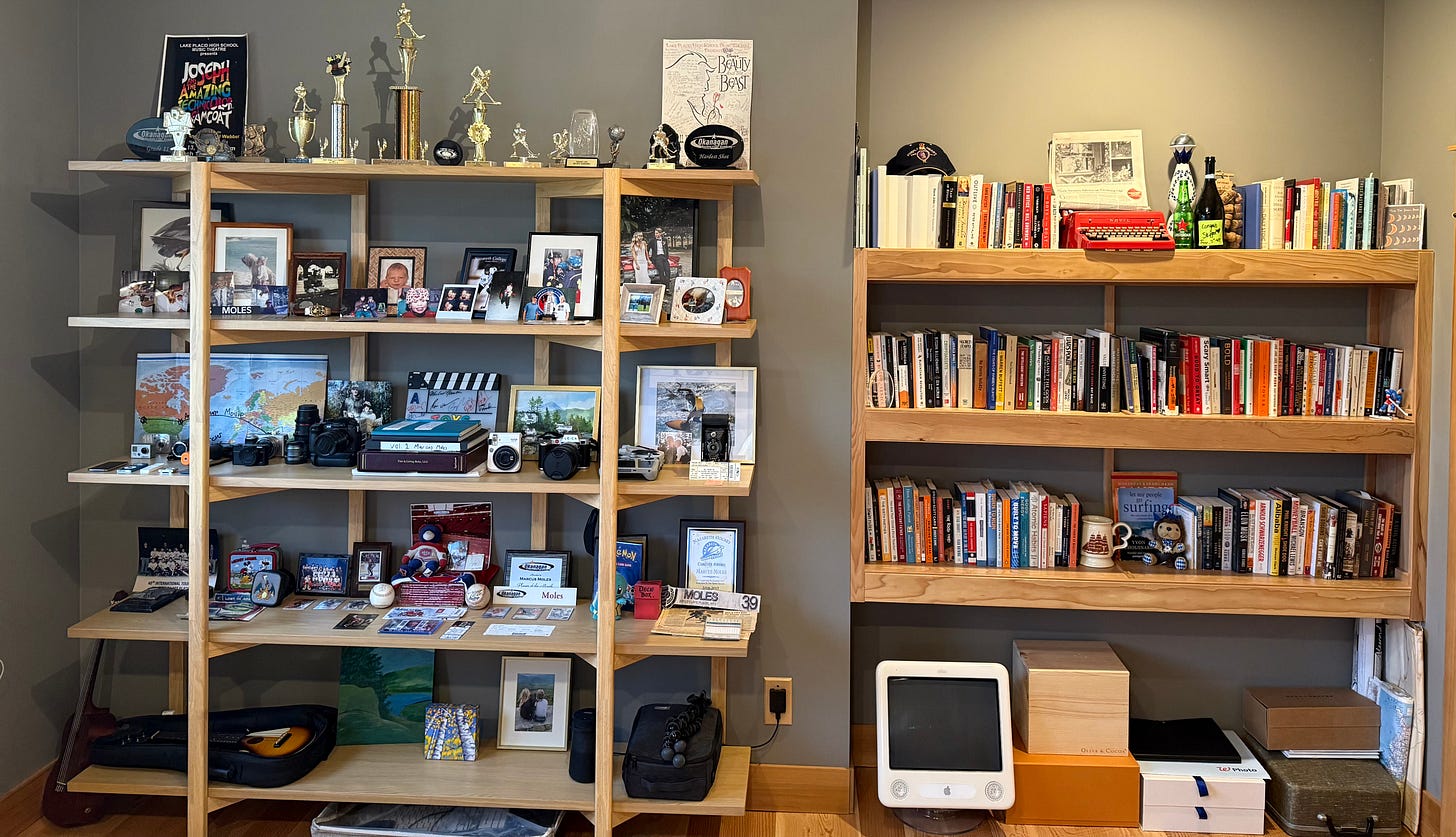 My office I thought! My big new office! I could buy a big shelf and put stuff on it and look at my life. Maybe if I don’t know what to do in the future, I will just reverse engineer and look back. I’ll look back and connect the dots.